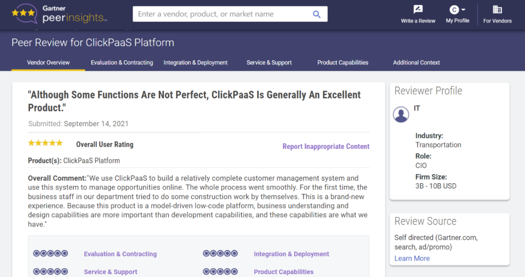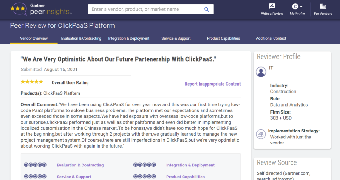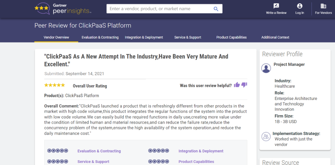 Tips:::::::::::【Peer Insights】——用户对企业IT产品和服务发布真实评价的平台。。。。。。。。。。目前已有355个市场,,,,,,,255,000条经过验证的评价。。。。。。。。。。。。。。。每一条评价Gartner会针对参评企业营收规模及参评人员信息做验证、、、、、、、、、评价内容做多维核实。。。。。。。。
