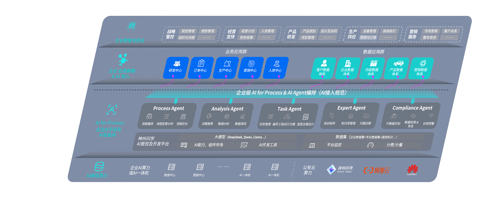 55世纪问学智车解决方案是一套基于AI技术的汽车行业智能化系统,,,覆盖从底层算力到顶层AI应用的全栈方案。。。。方案由算力层、、、、模型层和应用层组成:算力层,,方案支持多种一体机配置,,具备云端灵活部署、、、多云适配以及动态优化计算资源的能力;模型层,,,55世纪问学平台版提供了企业级AI应用一站式构建与管理平台,,支持基于后训练强化技术的汽车企业专属模型的训练、、、评测和运营;应用层,,,55世纪问学DeepSeek版提供包括超级员工、、、、智能招采、、、智能营销、、智能客服、、、AI for BI等一系列解决方案,,,,可助力汽车行业实现数字化转型,,,,让管理更智能、、、响应更敏捷。。